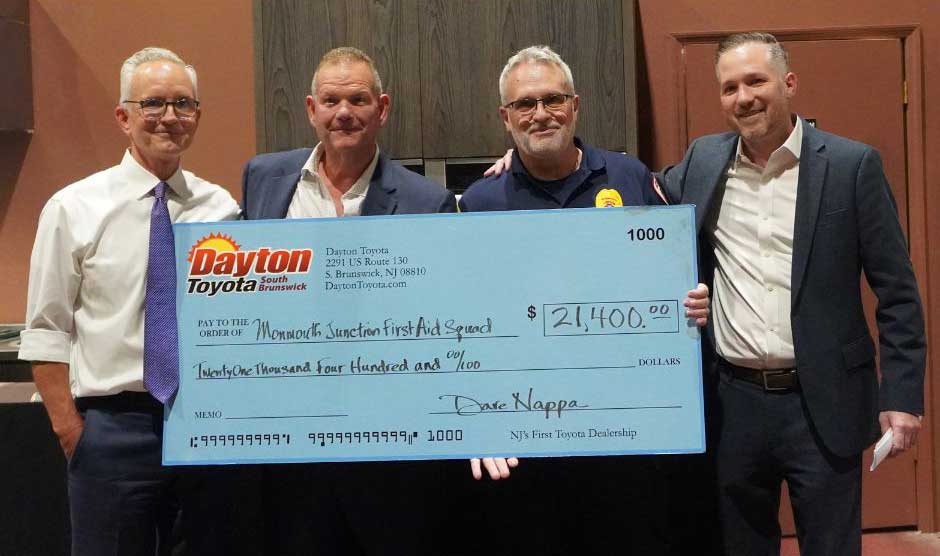 Wonderful job, Dayton Toyota, for donating more than $21,000 to the Monmouth Junction First Aid Squad, Inc. (MJFAS) of South Brunswick Township. MJFAS is a volunteer-led nonprofit dedicated to providing emergency care to residents and visitors as a courtesy service to the community.