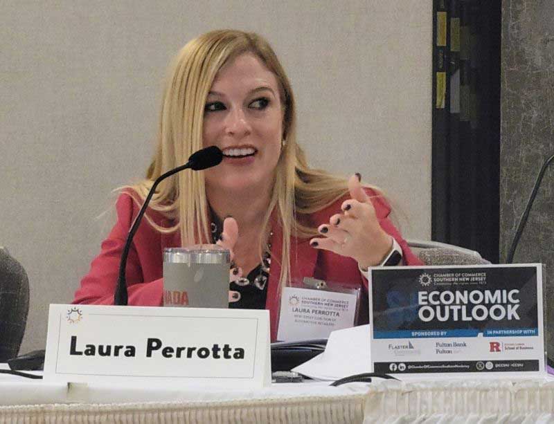 NJ CAR President Laura Perrotta joined Dr. Mark Hoffman (Fulton Bank), Alain Xiong-Calmes (Airbnb), and George Goldhoff (Hard Rock Hotel & Casino) on a panel moderated by Christopher Merrick (Flaster Greenberg) at the Southern New Jersey Chamber of Commerce Economic Outlook event. She spoke about the $45.4 billion auto retail industry that employs nearly 39,000 people in New Jersey.